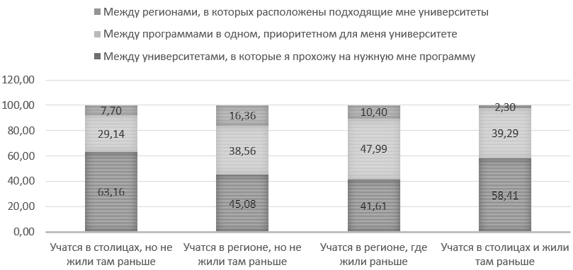 a. Для студентов столичных вузов – жителей столицы объектом выбора после подачи заявления чаще является университет, они более чувствительны к барьерам входа;